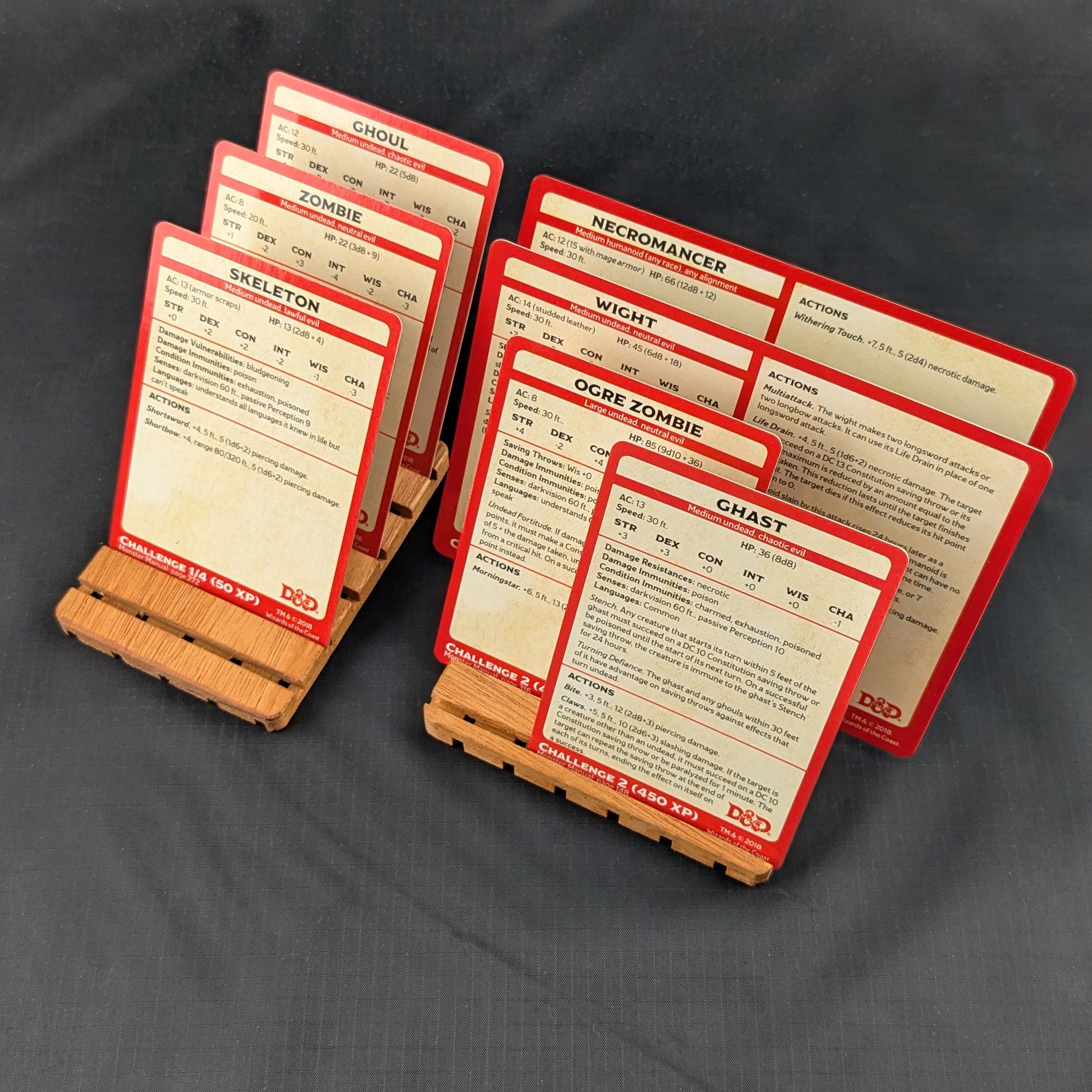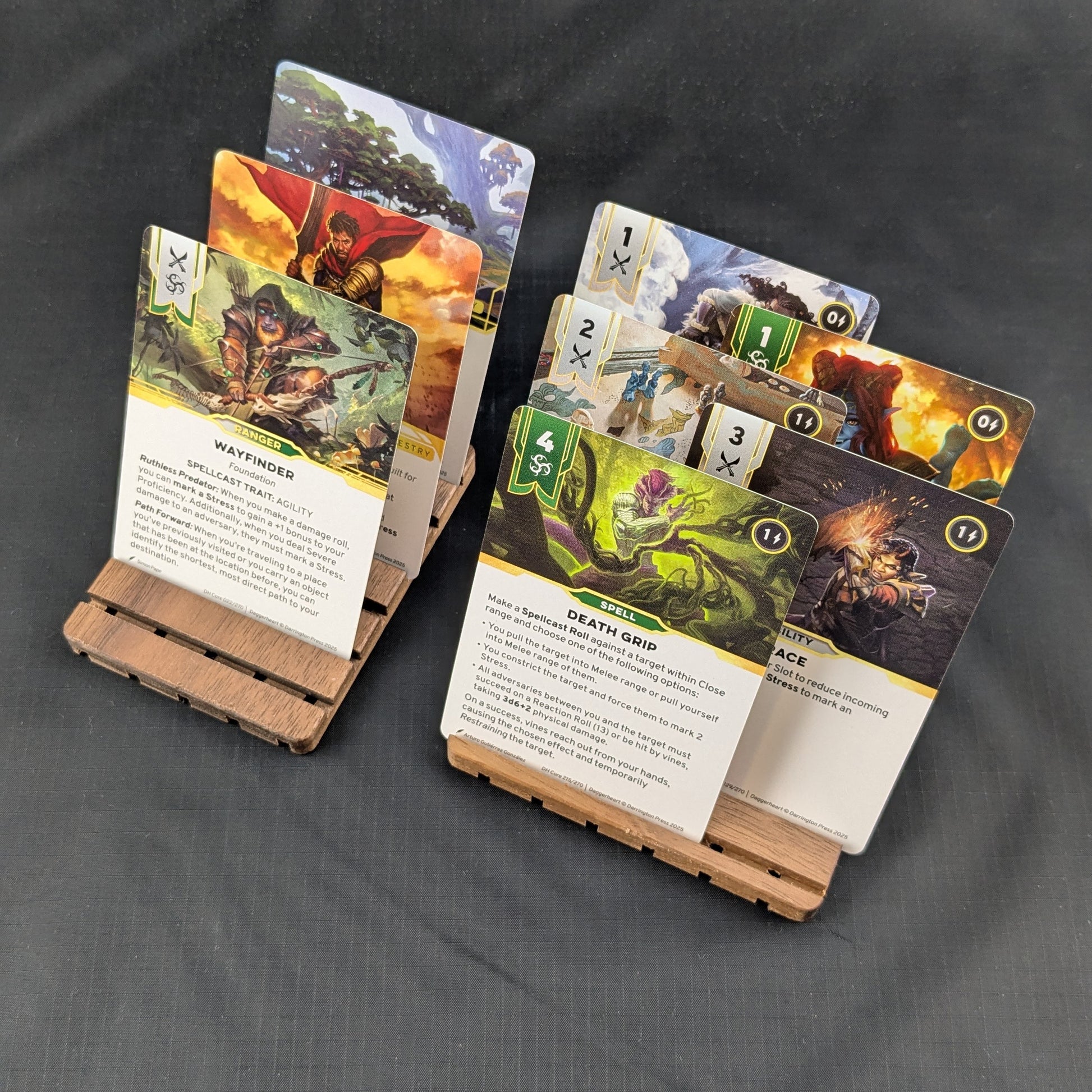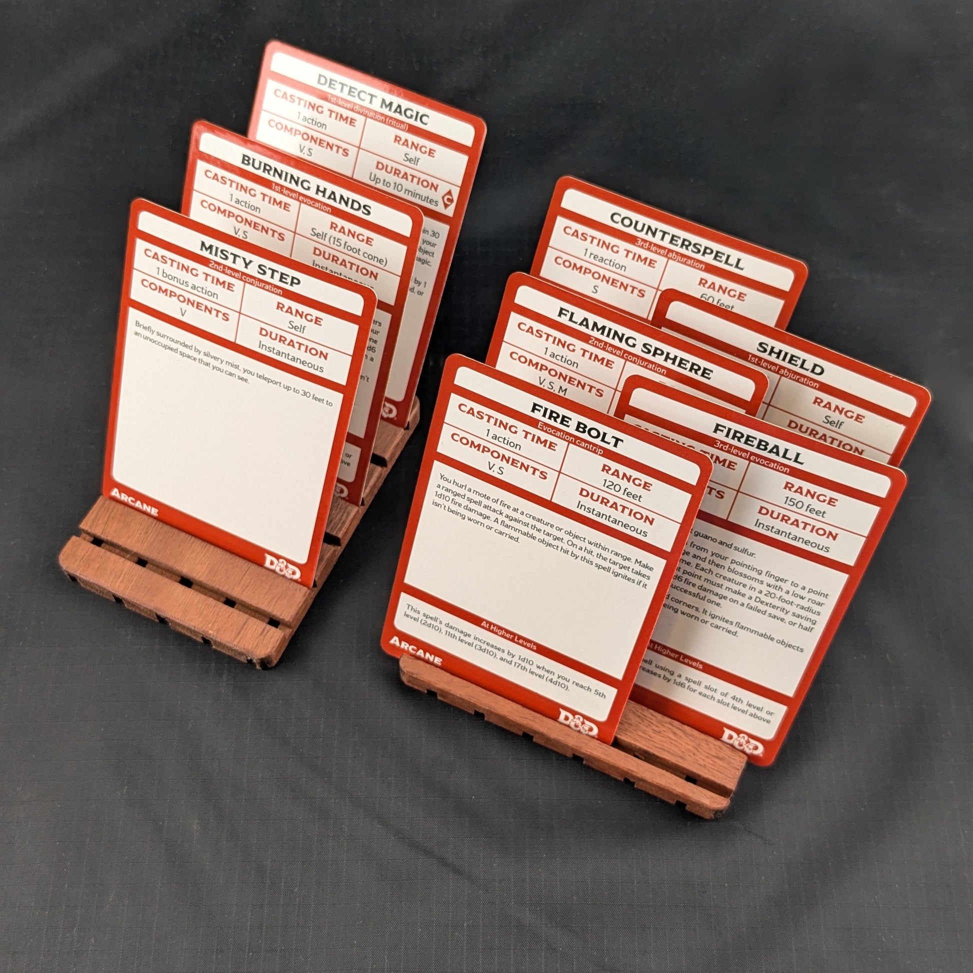 This card sized card holder is designed to match the dimensions of a standard playing card (just thicker), this solid timber holder features slots on both sides, with one side having vertical slots and the other horizontal, so you can display your cards in whatever way suits you best.