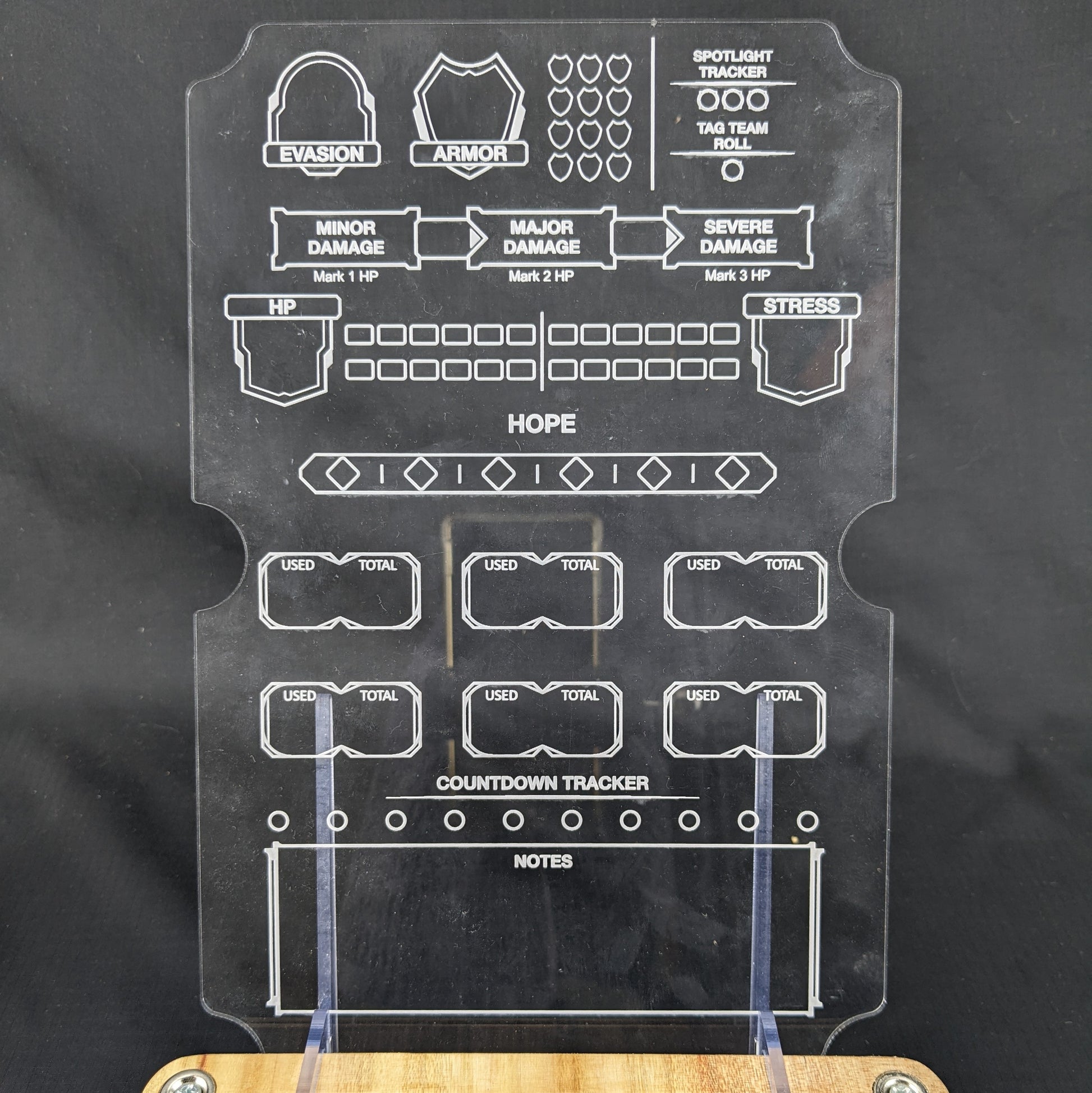 The middle layer of this Master Vault features 1 long skinny channel designed to hold pencil/pacer and eraser or if you need more space for your extra 16mm d6's they also can fit in here. The seven other channels are made to hold 7 standard size dice each and all channels are lined with soft polyurethane foam. The acrylic screen also has multiple functions, one is keeping your dice, minis and stationery in their place between sessions by fitting in the special groove between the lid and middle layer. You can also take notes on it or write messages on it with a white board marker during your games. The custom made screen holder pieces allow the screen to be placed in the edge of the dice tray/lid for easy viewing.